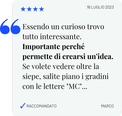 - Priority access agli eventi di Mondo Complesso, dove i temi di ciascun numero verranno discussi con speech esclusivi miei e di alcuni amici speciali